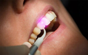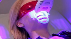 Tẩy trắng răng được thực hiện tại phòng khám răng bởi bác sĩ chuyên khoa...